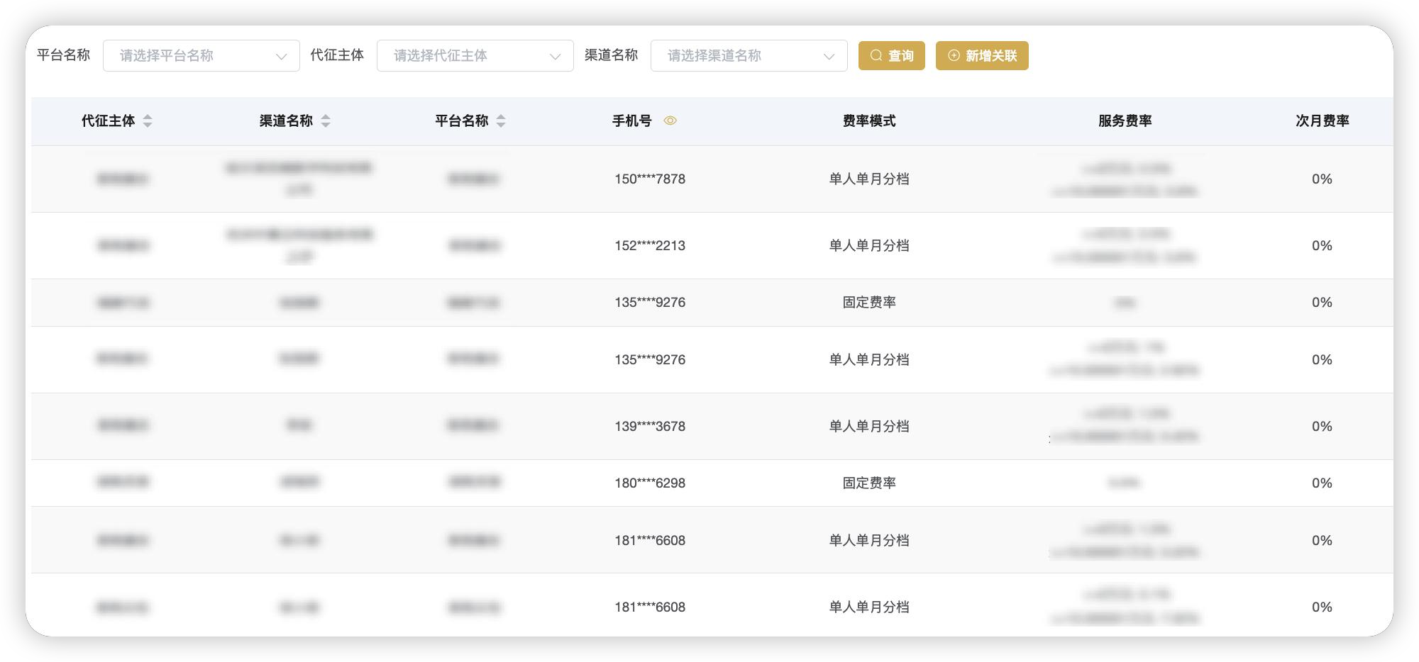 支持渠道配置多种费率模式,有效解决各种计费需求及业务场景